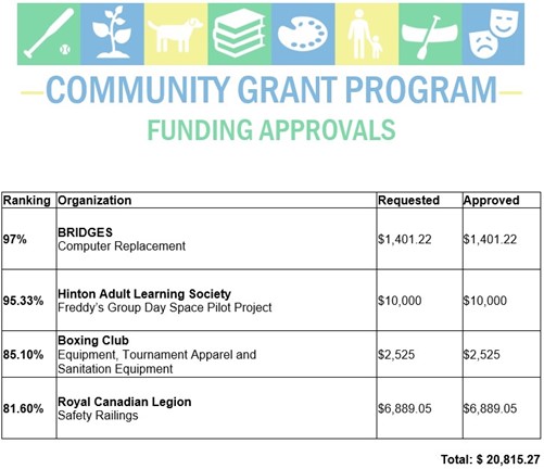 - Previous monies received from the Town of Hinton have met reporting requirements